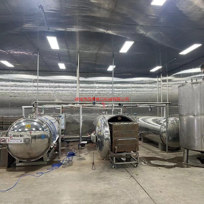 杀菌锅的常用型号尺寸有YS400-500、YS700-1200、YS900-1800、YS1000-2400、YS1200-2000、YS1200-3200、YS1200-3600、YS1200-4000MM等,本公司可根据客户实际加工要求定制杀菌锅直径和长度尺寸,欢迎咨询客服获取设备介绍及报价。杀菌锅由锅体、锅盖、开启装置、锁紧楔块、安全联锁装置、轨道、灭菌筐、蒸汽喷管及若干管口等组成。锅盖密封采用充气式硅橡胶耐温密封圈,密封可靠,使用寿命长。从杀菌方式上分为:热水循环式杀菌、蒸汽式杀菌、淋水式杀菌。从加热形式上分为:蒸汽加热、电加热、电汽两用型。从结构上可分为:三锅串联式、双锅并联式、单锅、双层水浴式、自动回转式、旋转式。