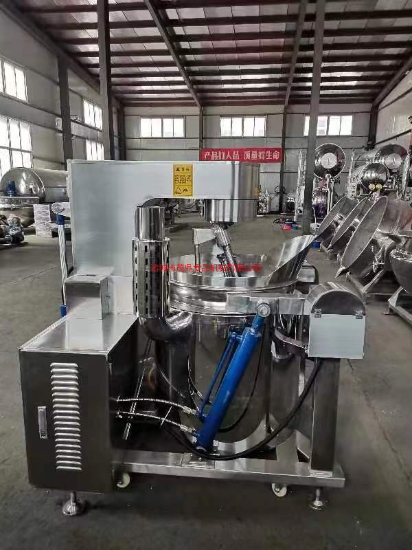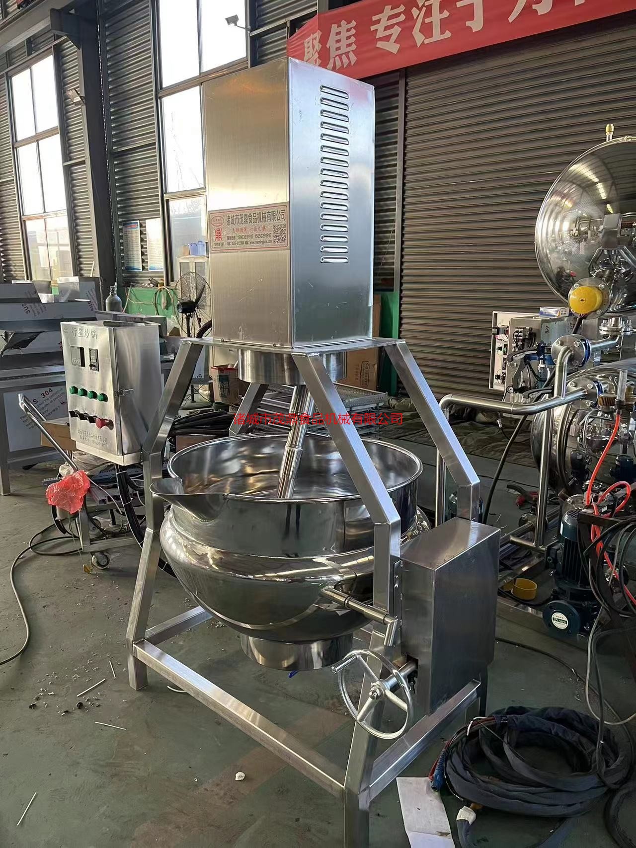行星搅拌炒锅主要由锅体、架体、搅拌系统、加热系统、调速传动装置、搅拌轴、锅体翻转系统等组成。行星炒锅加热方式可分为电加热、燃气加热、蒸汽加热、电磁加热等方式。行星炒锅适用于:火锅底料、月饼馅料、高粘度物料、果酱、年糕、辣椒酱、食堂、阿胶、熬汤、豆蓉、豆沙、芝麻酱、五谷豆浆、方便面酱料、香菇酱等食品加工搅拌炒制。行星炒锅采用不锈钢制作,搅拌彻底、无死角、搅拌均均、不易糊锅。搅拌器和刮板结构设计独特,物料搅拌混合更均匀,刮底更彻底,不容易产生糊锅现象。