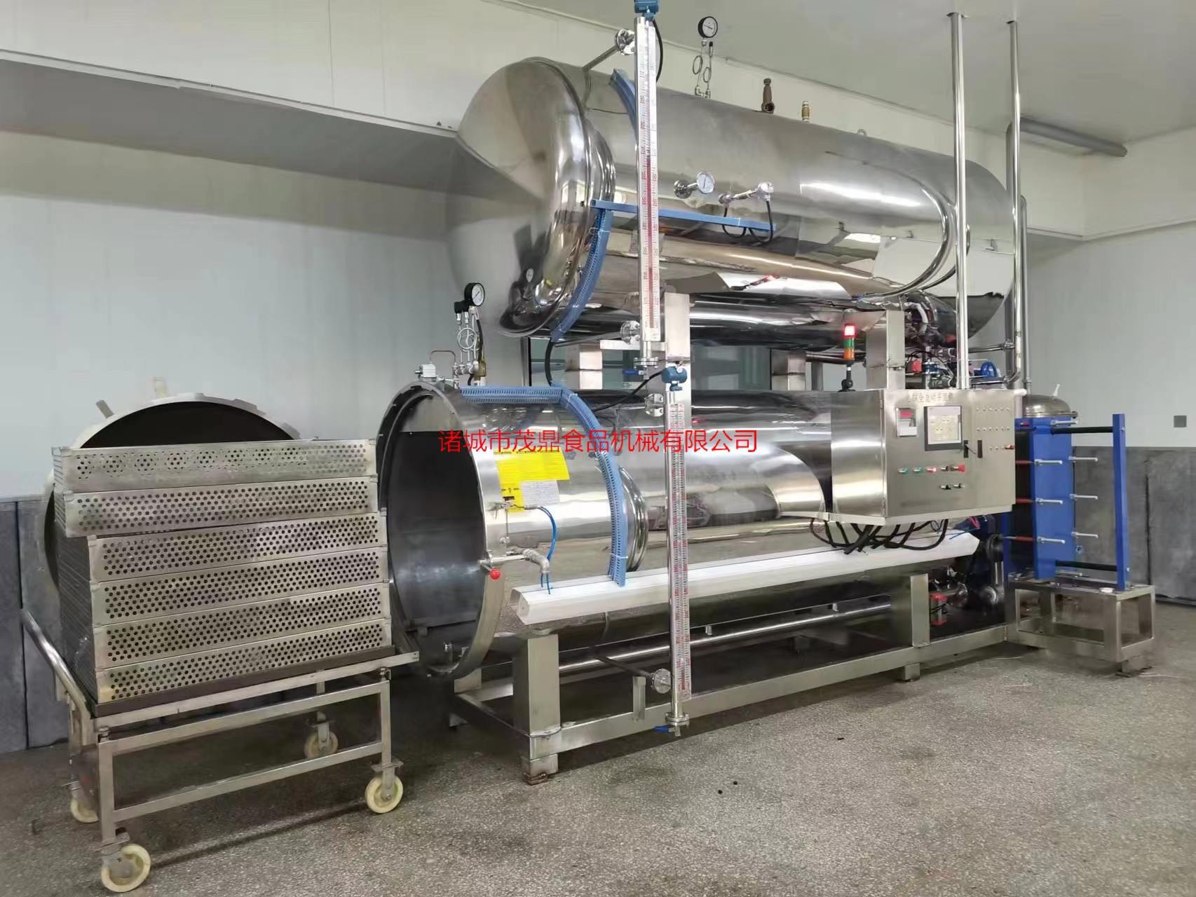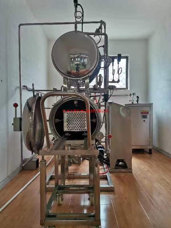 杀菌锅以有一定的压力的蒸气为热源,具有受热面积大,热效率高、加热均匀、液料沸腾时间短、加热温度容易控制等特点。本锅内层锅体(内锅)采用耐酸耐热的奥氏型不锈钢制造,配有压力表和阀门,外型美观、安装容易、操作方便、稳定可靠。杀菌锅的作用是使食品等在密闭的环境下,接受升温、保温、降温三个过程,对食品进行高温短时间杀菌或灭菌,既杀灭食品中可能的致病菌,又保持食品的重要营养成份及食品的色香味不受损害。并配有压缩空气管系,以压缩空气的反压力作用,确保产品在灭菌后的包装使用要求,为延长食品的保存期。