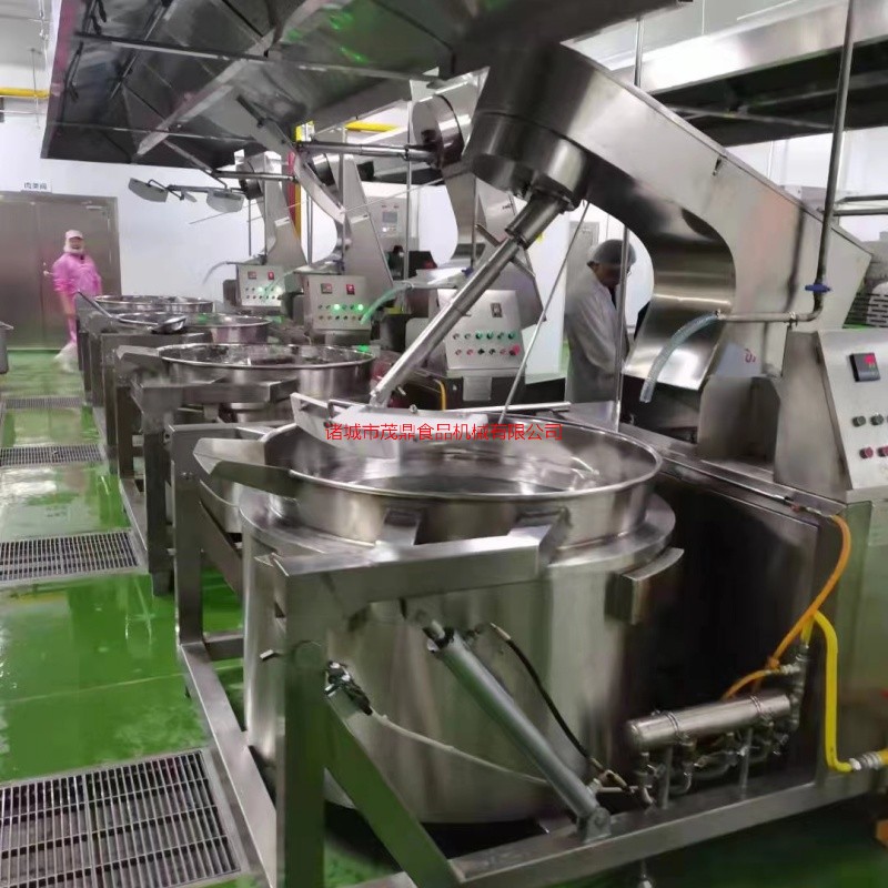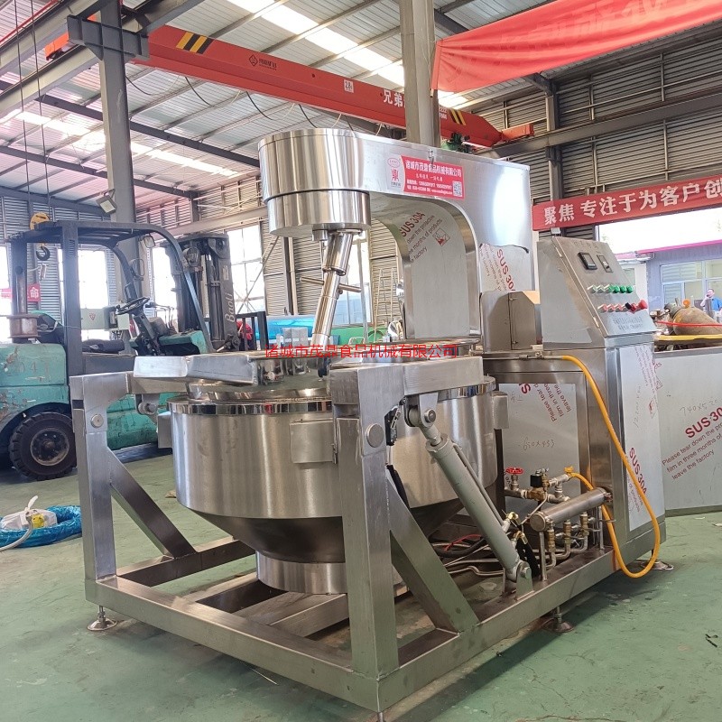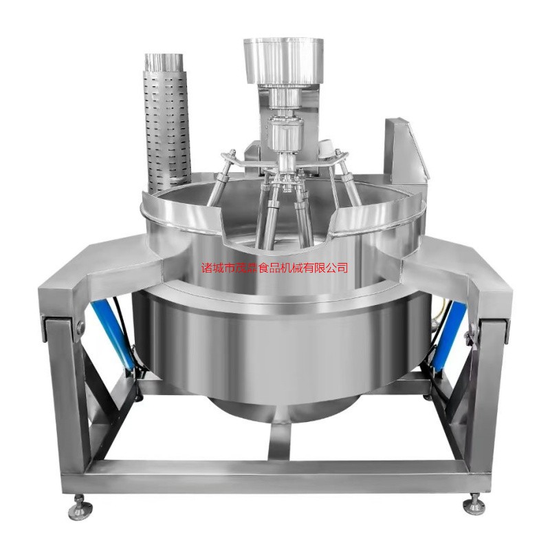 行星搅拌炒锅主要由锅体、架体、搅拌系统、加热系统、调速传动装置、搅拌轴、锅体翻转系统等组成。行星炒锅加热方式可分为电加热、燃气加热、蒸汽加热、电磁加热等方式。行星炒锅适用于:火锅底料、月饼馅料、高粘度物料、果酱、年糕、辣椒酱、食堂、阿胶、熬汤、豆蓉、豆沙、芝麻酱、五谷豆浆、方便面酱料、香菇酱等食品加工搅拌炒制。行星炒锅采用不锈钢制作,搅拌彻底、无死角、搅拌均均、不易糊锅。搅拌器和刮板结构设计独特,物料搅拌混合更均匀,刮底更彻底,不容易产生糊锅现象。