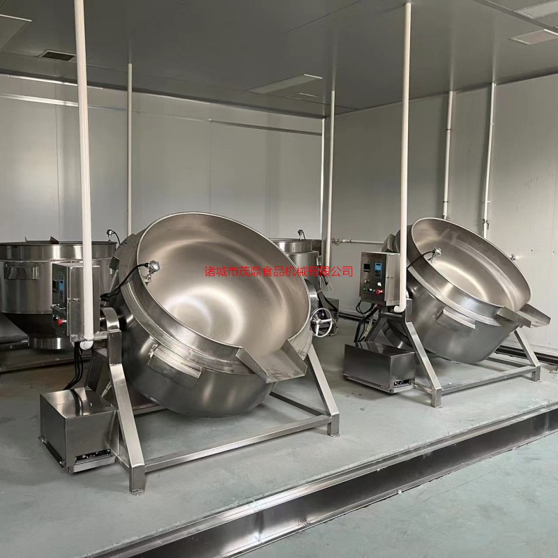 电加热搅拌夹层锅,具有耐高温、耐腐蚀、生产能力强、不用蒸汽加热等优点。使用电加热搅拌夹层锅,温度可根据食品需要调节,温度可设到260度。也可根据食品需要调节时间,完全实现自动化生产。刮底搅拌系统每分钟上21转,完全实现搅拌无死角,不糊锅底,大大节省人力,该设备受热面积大,受热均匀,具有保温系统,连续工作节能节时,非常方便;该锅体可倾斜90度,方便出料,方便清洗。与食品接触的地方均由304不锈钢制成,结实耐用,不会生锈,是良好的食品加工设备。