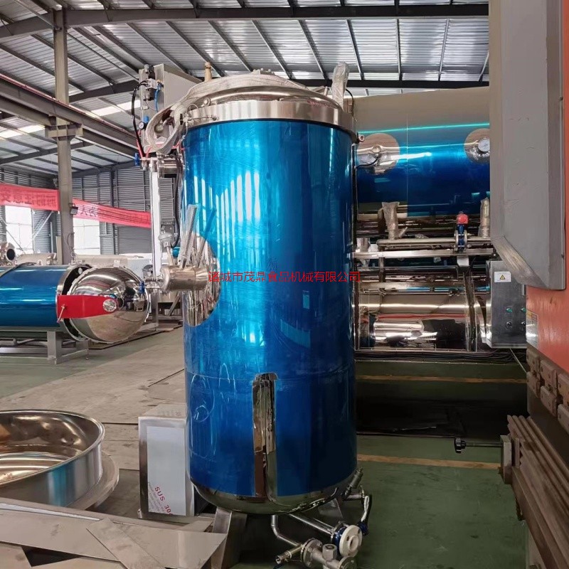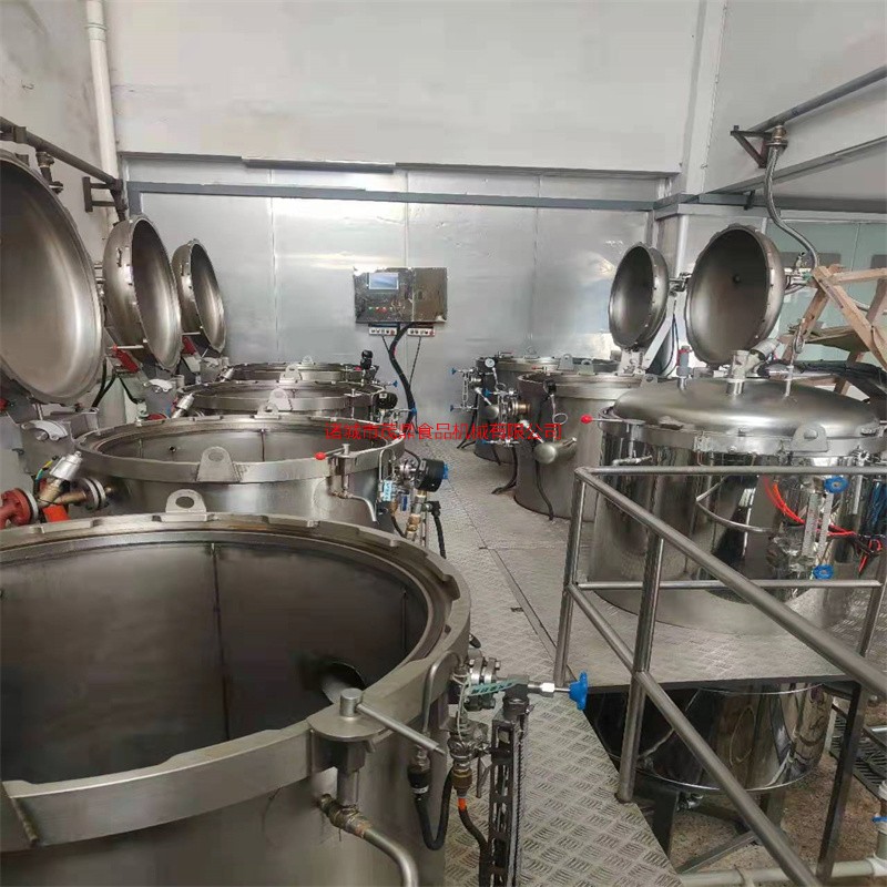 蒸煮粽子需要将粽子完全浸泡到水里完成蒸煮熟化过程。采用高压快速蒸煮方式,提升蒸煮时间。普通蒸煮锅一只大锅只能容纳4-500只粽子而了,一锅可容纳5000只粽子,比之前的产量高出足足10倍,有效提高产能。 粽子的主要食材是糯米,常规蒸煮时间长容易夹生影响粽子品质,而使用这一问题得到了解决。带有内筐,完成蒸煮后可以整体全部吊出,操控简单。