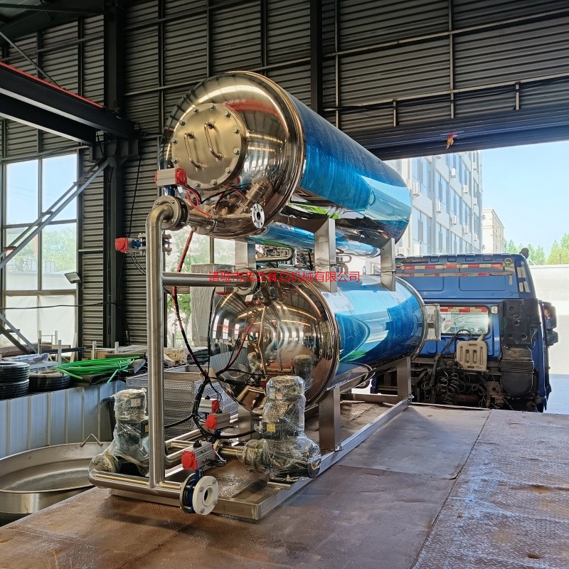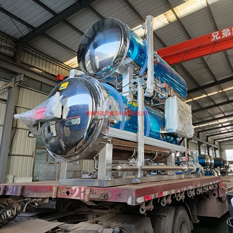 杀菌锅以有一定的压力的蒸气为热源,具有受热面积大,热效率高、加热均匀、液料沸腾时间短、加热温度容易控制等特点。本锅内层锅体(内锅)采用耐酸耐热的奥氏型不锈钢制造,配有压力表和阀门,外型美观、安装容易、操作方便、稳定可靠。杀菌锅的作用是使食品等在密闭的环境下,接受升温、保温、降温三个过程,对食品进行高温短时间杀菌或灭菌,既杀灭食品中可能的致病菌,又保持食品的重要营养成份及食品的色香味不受损害。并配有压缩空气管系,以压缩空气的反压力作用,确保产品在灭菌后的包装使用要求,为延长食品的保存期。
