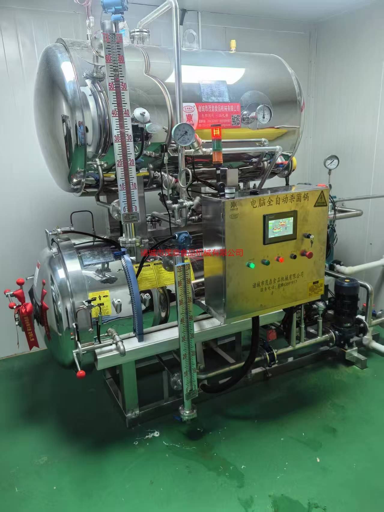 杀菌锅以有一定的压力的蒸气为热源,具有受热面积大,热效率高、加热均匀、液料沸腾时间短、加热温度容易控制等特点。本锅内层锅体(内锅)采用耐酸耐热的奥氏型不锈钢制造,配有压力表和阀门,外型美观、安装容易、操作方便、稳定可靠。杀菌锅的作用是使食品等在密闭的环境下,接受升温、保温、降温三个过程,对食品进行高温短时间杀菌或灭菌,既杀灭食品中可能的致病菌,又保持食品的重要营养成份及食品的色香味不受损害。并配有压缩空气管系,以压缩空气的反压力作用,确保产品在灭菌后的包装使用要求,为延长食品的保存期。