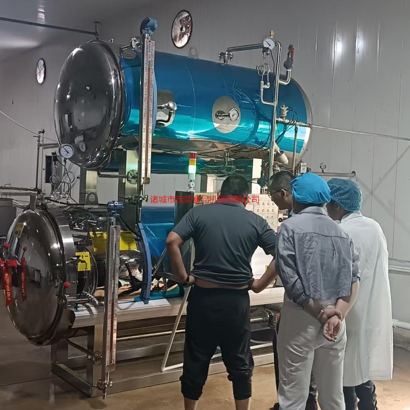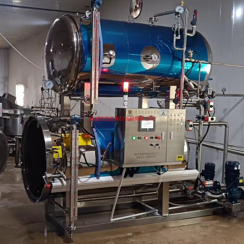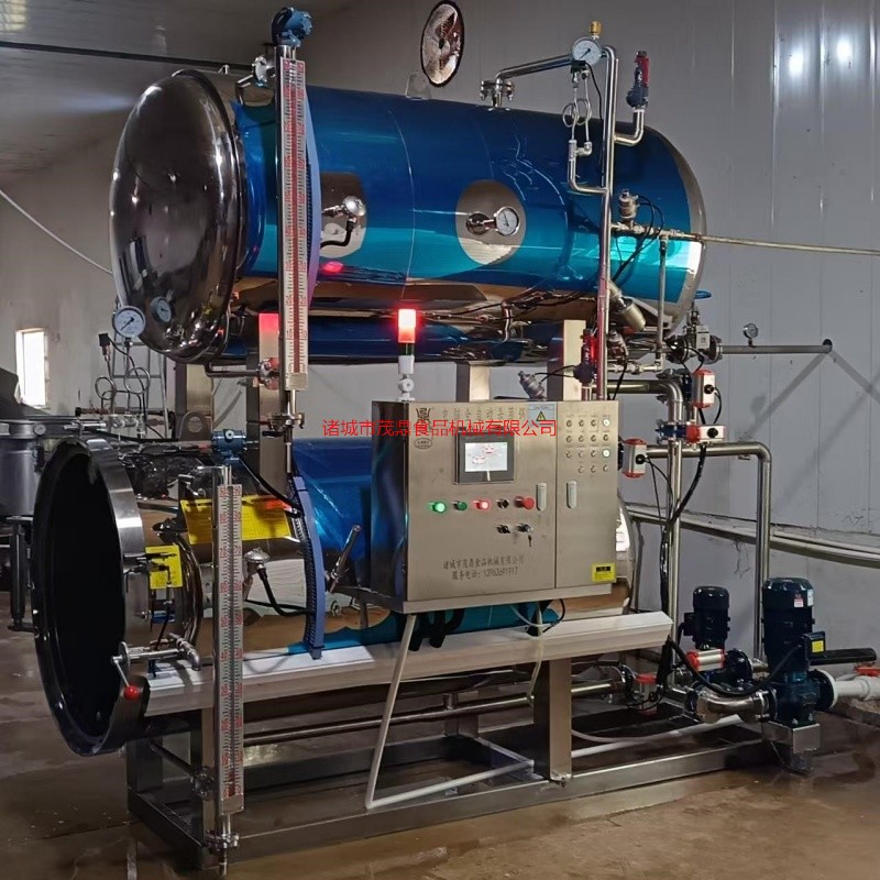 双层水浴杀菌锅对于热敏性食品的杀菌非常有用,对于大包装食品,热穿透速度快,能确保良好的杀菌效果。杀菌水首先在上罐中预热到设定温度,杀菌温度起点高,可有效缩短杀菌时间,尤其对于热包装的食品,能大程度保留食品原有的口感、色泽和营养价值。杀菌结束后杀菌水可回收到上罐供下批次食品杀菌用,节约能源,缩短杀菌周期。