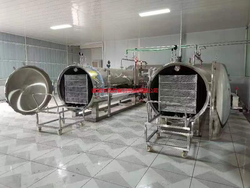 杀菌锅的常用型号尺寸有YS400-500、YS700-1200、YS900-1800、YS1000-2400、YS1200-2000、YS1200-3200、YS1200-3600、YS1200-4000MM等,本公司可根据客户实际加工要求定制杀菌锅直径和长度尺寸,欢迎咨询客服获取设备介绍及报价。杀菌锅由锅体、锅盖、开启装置、锁紧楔块、安全联锁装置、轨道、灭菌筐、蒸汽喷管及若干管口等组成。锅盖密封采用充气式硅橡胶耐温密封圈,密封可靠,使用寿命长。从杀菌方式上分为:热水循环式杀菌、蒸汽式杀菌、淋水式杀菌。从加热形式上分为:蒸汽加热、电加热、电汽两用型。从结构上可分为:三锅串联式、双锅并联式、单锅、双层水浴式、自动回转式、旋转式。