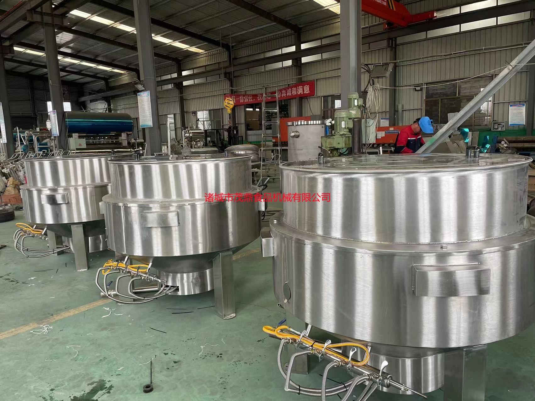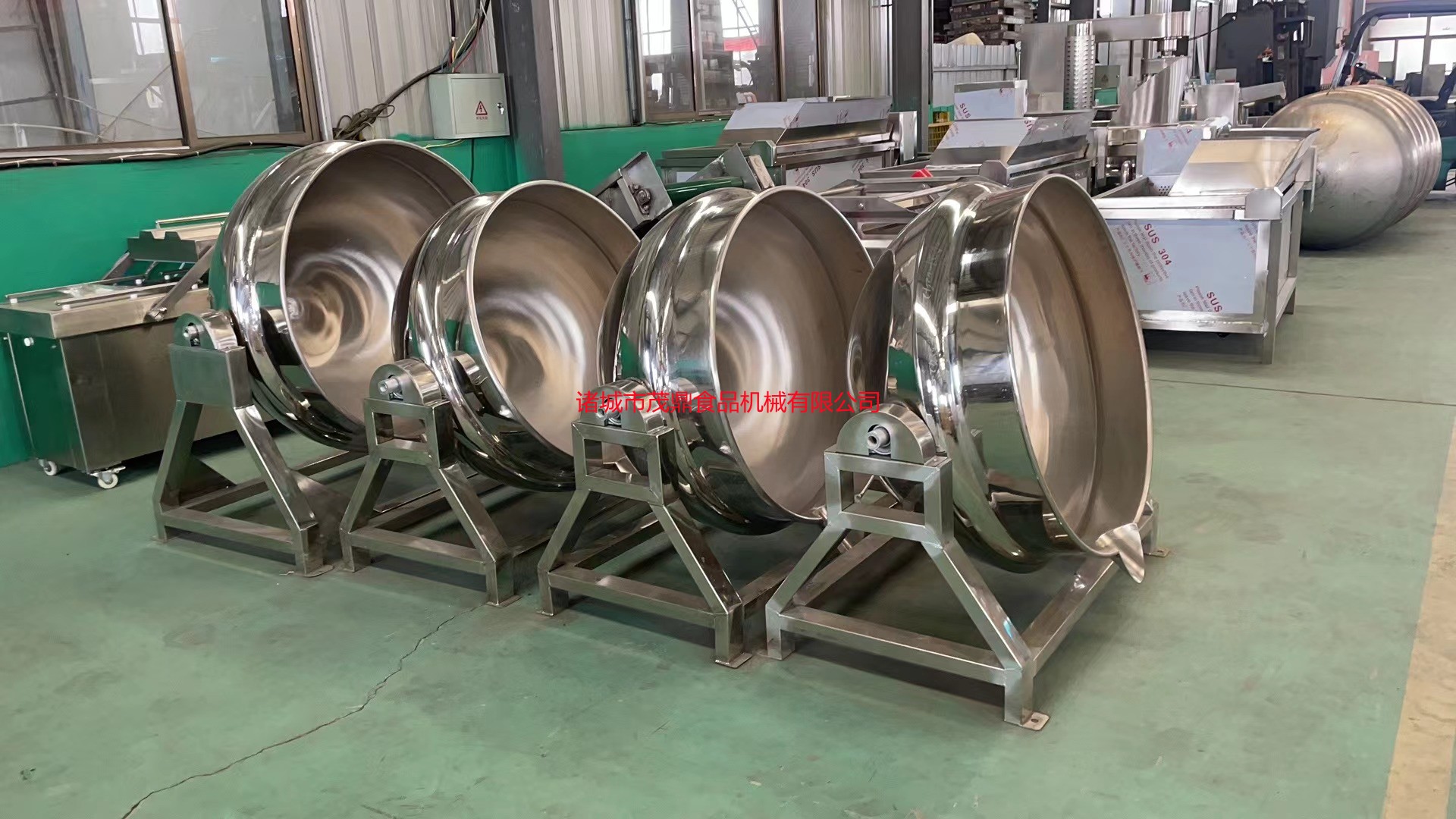 二、用途;夹层锅可用于炒菜、煮粥、煮笋干、熬汤、烧水、煮饭、化糖、化胶、煮面、熬油、炒馅料(莲蓉馅、月饼馅、绿豆馅、豆沙馅等)、糕点、饮料、蜜饯、卤制品(比如卤鸭脖、毛品、鸭爪、鸡爪、鸡翅、猪耳朵、豆腐干、肉制品等)、果酱(如:豆瓣酱,甜面酱,花生酱,辣椒酱,牛肉酱等)、制酒等食品行业以及制药(药材和焙烤)与日用化工等行业。