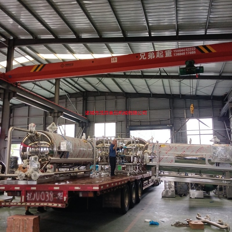 诸城茂鼎食品机械有限公司急客户所急,周末不休息,两套两锅一罐杀菌锅发货黑龙江,送货上门免费上门安装调试并培训操作人员,教会为止。