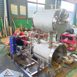 杀菌锅从控制方式上分有四种:1、手动控制型:所有阀门和水泵均由手动控制,包括加水、升温、保温、降温等工序。2、电气半自动控制型:压力由电接点压力表控制,温度由传感器(pt100)和进口温控仪控制(精度为±1℃),降温过程由人工操作。3、电脑半自动控制型: 采用PLC和文本显示器将采集的压力传感器信号和温度信号进行处理,可以储存杀菌工艺,控制精度高,温控可达±0.3℃。4、电脑全自动控制型:全部过程都有PLC和触摸屏控制,可以储存杀菌工艺,操作工只需按启动按钮即可,杀菌完毕后自动报警,温控精度可达±0.1℃。