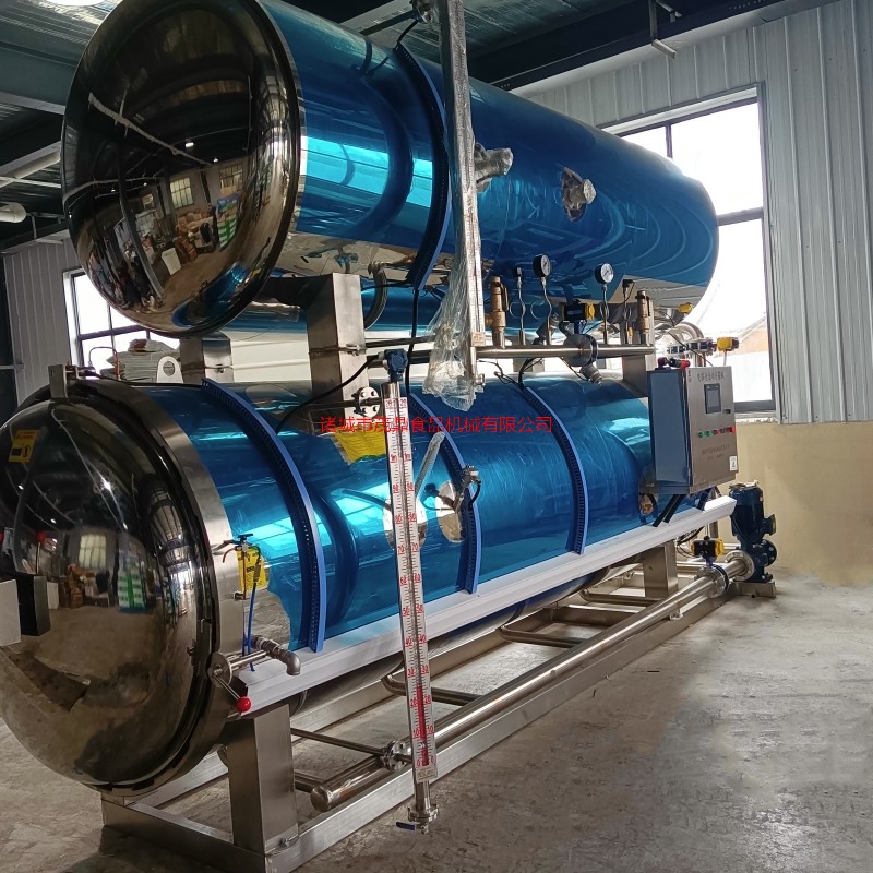 杀菌锅以有一定的压力的蒸气为热源,具有受热面积大,热效率高、加热均匀、液料沸腾时间短、加热温度容易控制等特点。本锅内层锅体(内锅)采用耐酸耐热的奥氏型不锈钢制造,配有压力表和阀门,外型美观、安装容易、操作方便、稳定可靠。杀菌锅的作用是使食品等在密闭的环境下,接受升温、保温、降温三个过程,对食品进行高温短时间杀菌或灭菌,既杀灭食品中可能的致病菌,又保持食品的重要营养成份及食品的色香味不受损害。并配有压缩空气管系,以压缩空气的反压力作用,确保产品在灭菌后的包装使用要求,为延长食品的保存期。